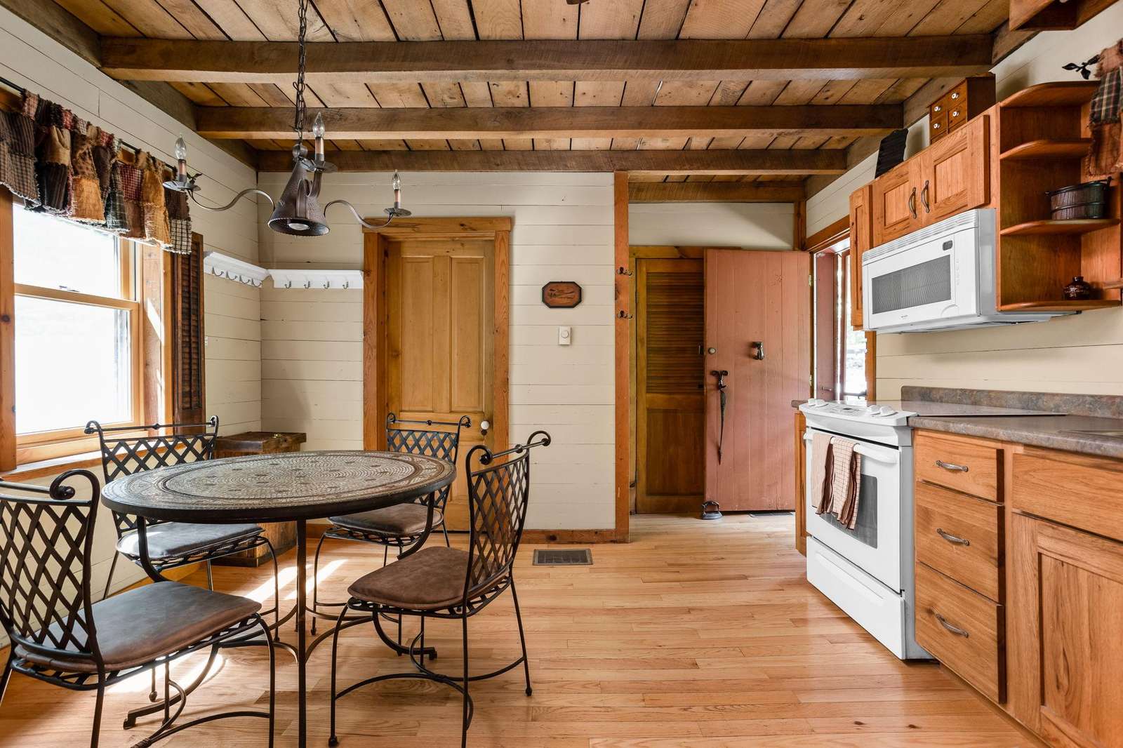 The first thing you'll see as you pull up is a fully finished garage... a place you'll want to spend many hours! Inside you'll find a pool table, dartboard, tv, bar, fridge, and a cornhole set (+ heat/AC). Continue down the sidewalk to the covered front porch and the main entrance. You'll enter the fully equipped kitchen with enough room for you to prepare a delicious dinner (don't forget the outdoor grills, too).