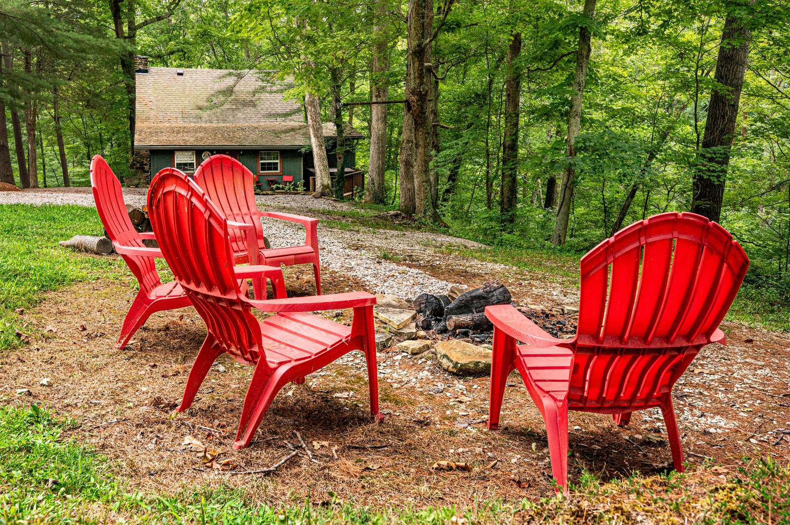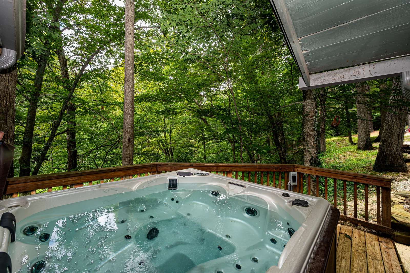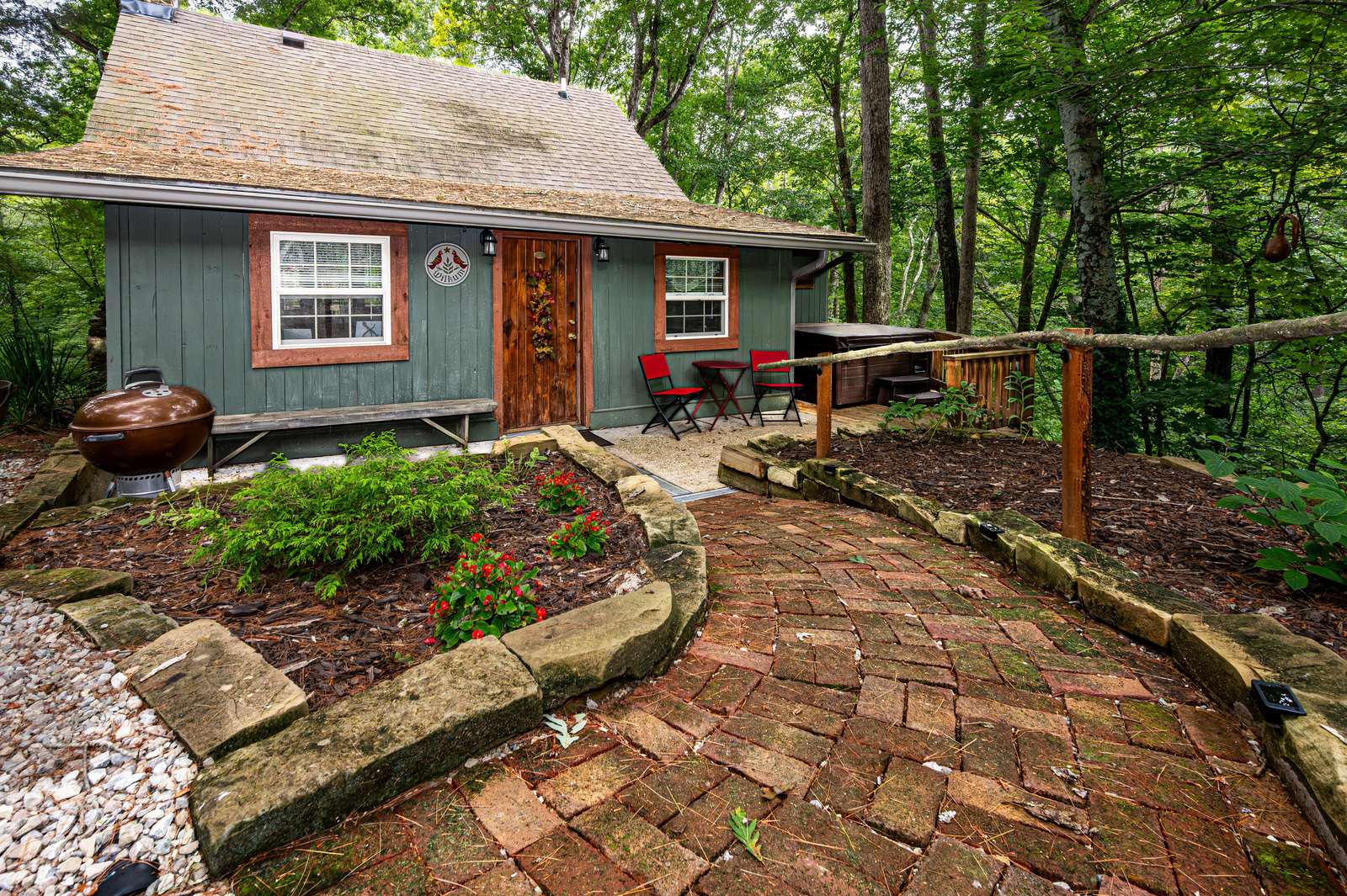 The back deck’s hot tub provides a relaxing setting to soak up the views. There is a grill off the back patio and a camp fire pit for sharing stories and creating new Brown County memories