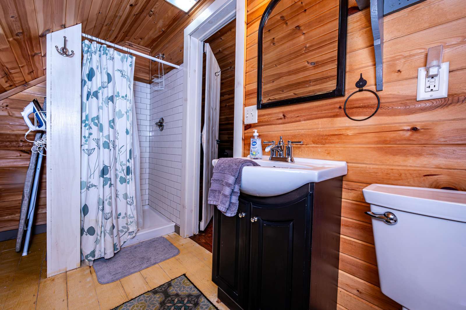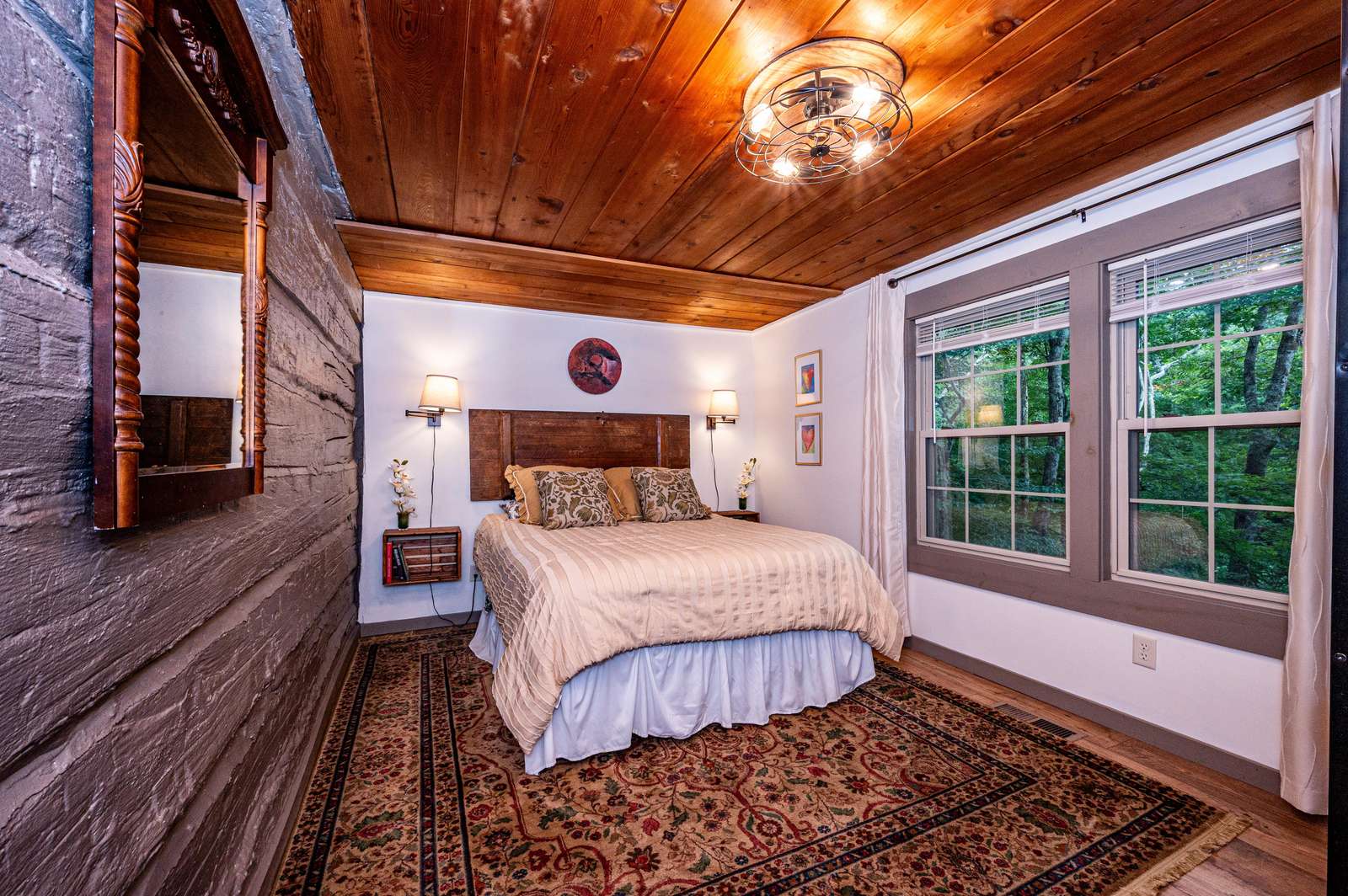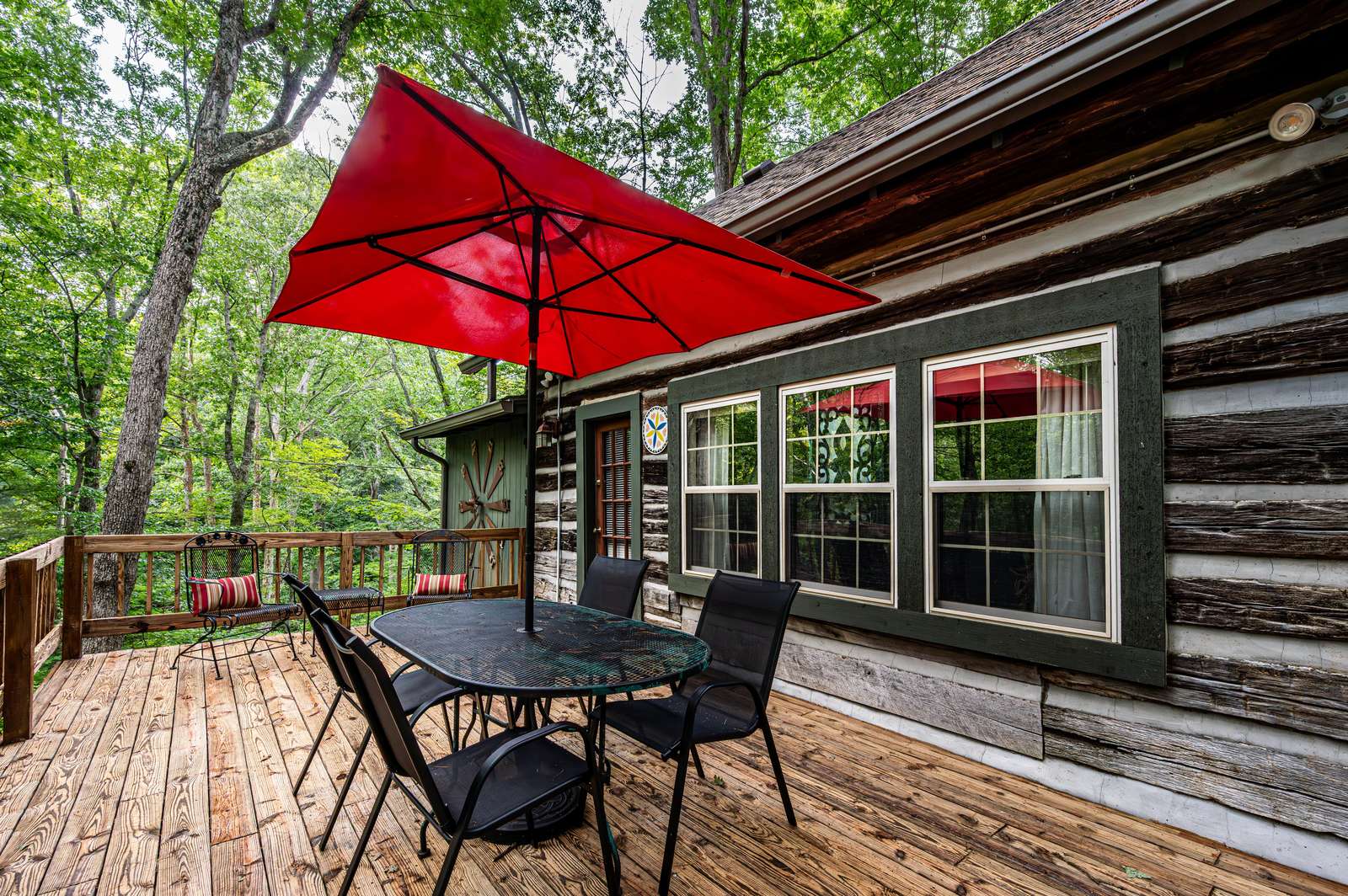 This delightfully cozy two bedroom (4-person) historic log cabin is just a “hop, skip and jump” from downtown Nashville, yet has a private setting perched high on a 2-acre wooded lot overlooking a creek. Both the huge front deck and the back hot tub deck provide tree house like views. The owner’s joy of antiques and fun “quirky uniques” shows through in this beautifully decorated cabin that was totally renovated in winter 2016.