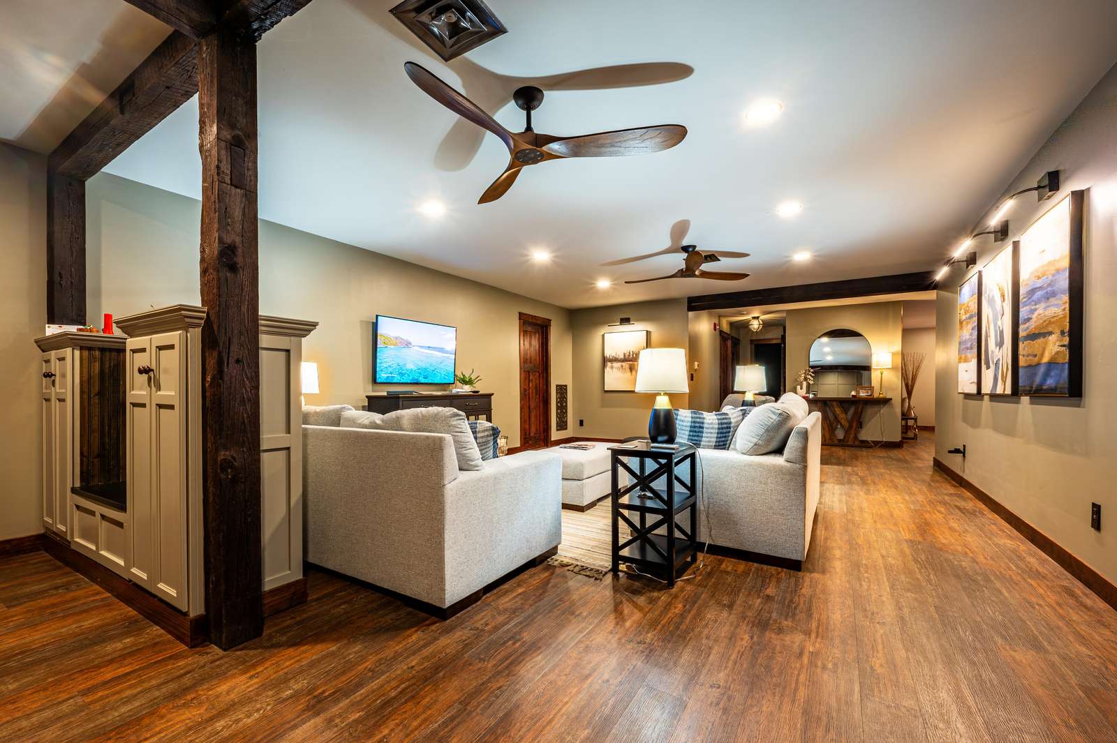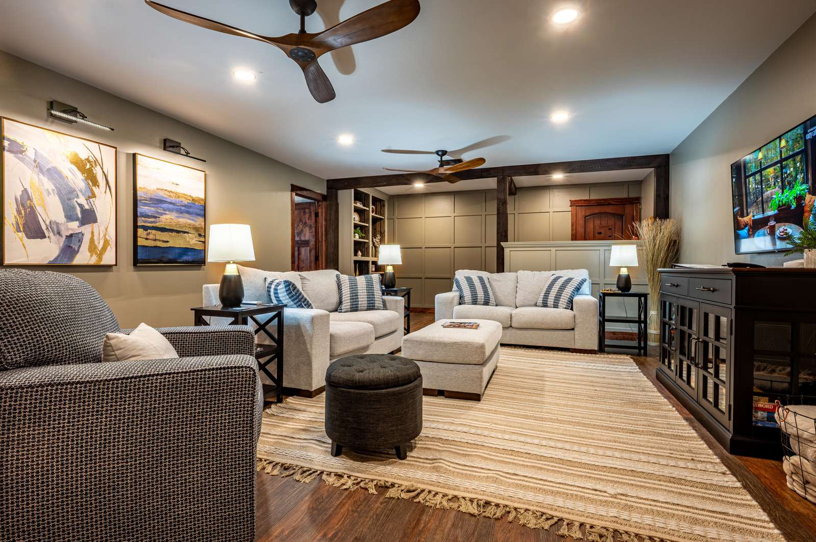 • Living room with two loveseats, swivel chair & 55" Smart TV