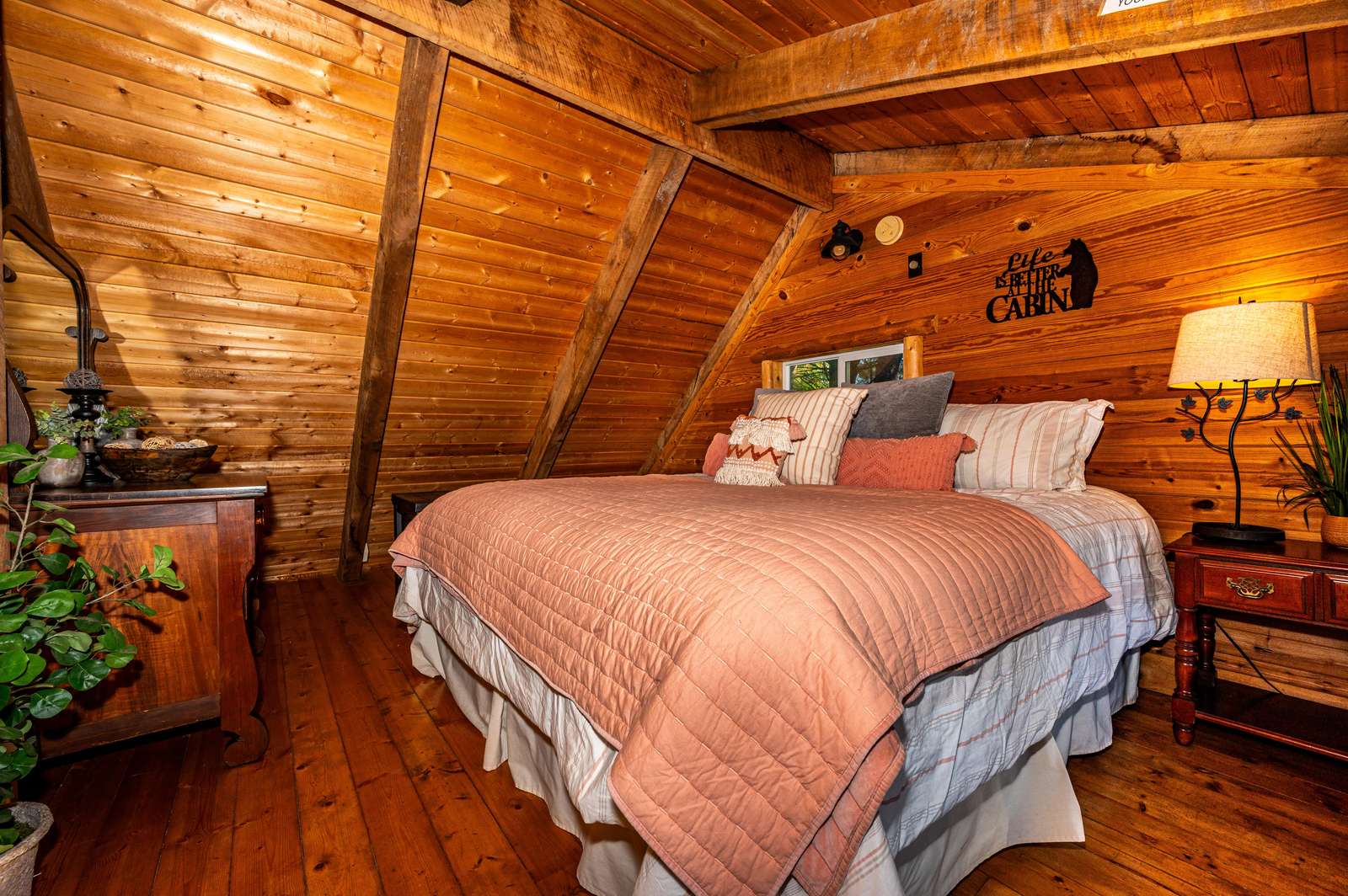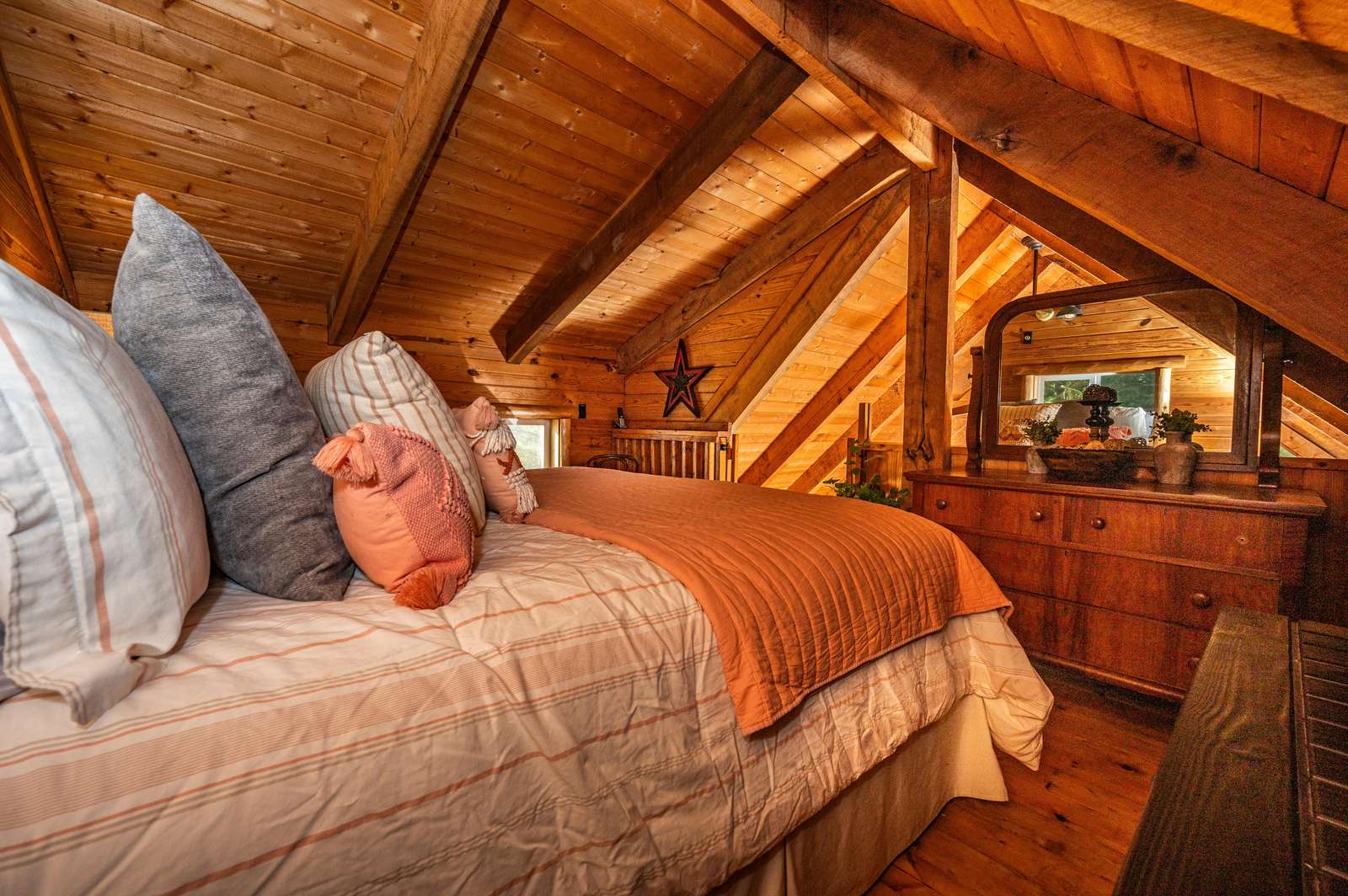• 1 King bed (open loft, ladder access only)
