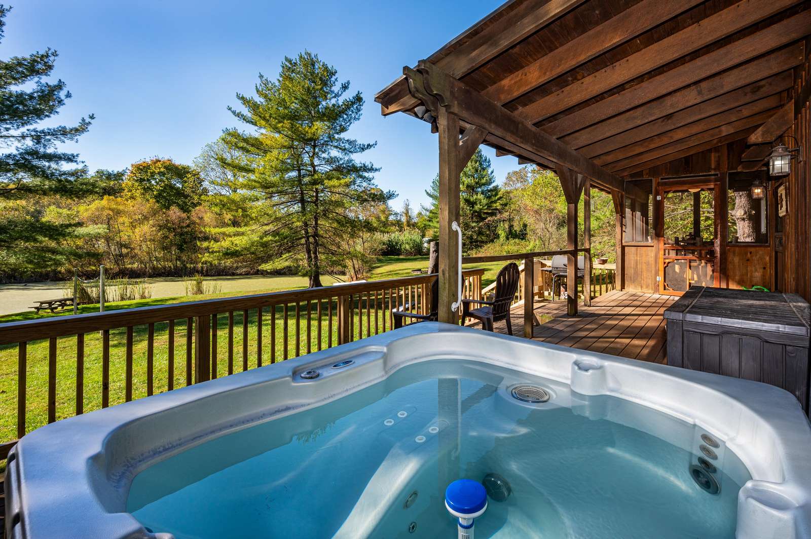 As you head down the drive lined with mature pine trees, a soft aroma of pine and woods fills the air, instantly removing any stresses and worries. Now your amazing vacation begins!
