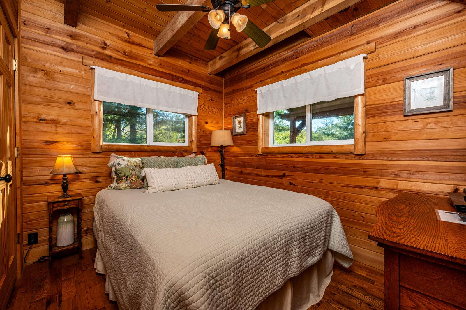 • 1 Queen bed (main level bedroom overlooking pond)
