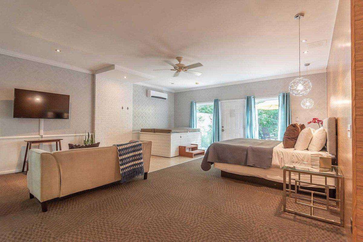 Yellowwood Inn – Suite #1 is a private, ground-floor suite designed for couples seeking comfort, privacy, and relaxation. The open-concept layout offers modern amenities and a cozy atmosphere, ideal for a romantic getaway or quiet retreat.